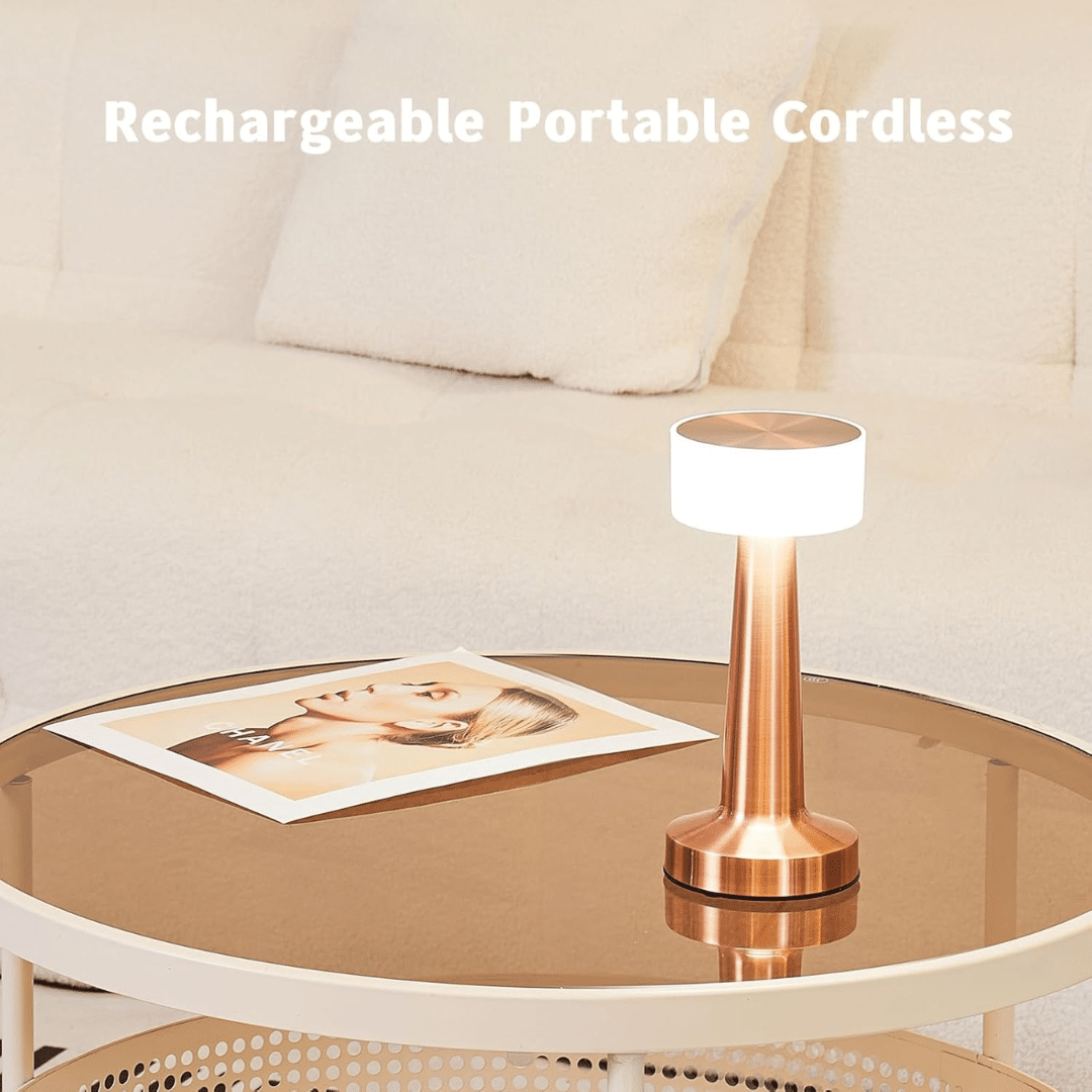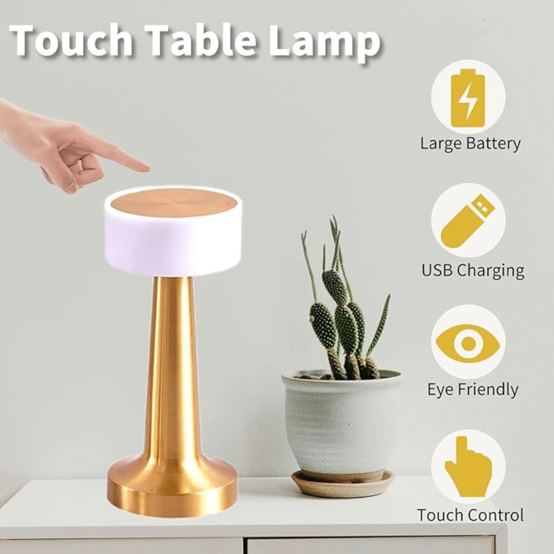 أباجورة طاولة LED محمول قابل لإعادة الشحن مع 3 خيارات للإضاءة (أبيض، أحمر، دافئ) ذهبي