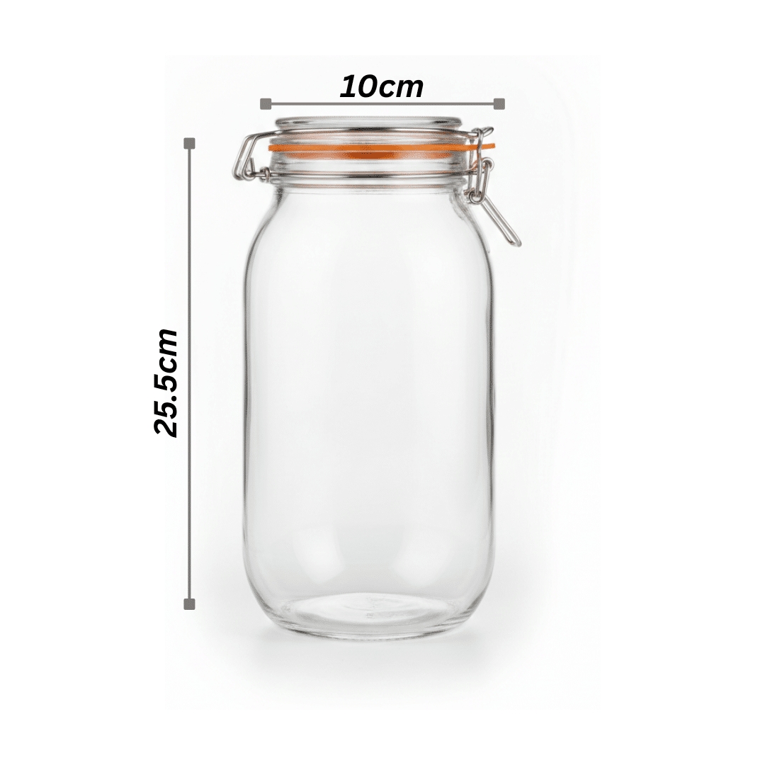 برطبان تخزين زجاجي أسطواني من داني هوم – سعة 2 لتر | غطاء محكم الإغلاق بمشبك مع حلقة سيليكون
