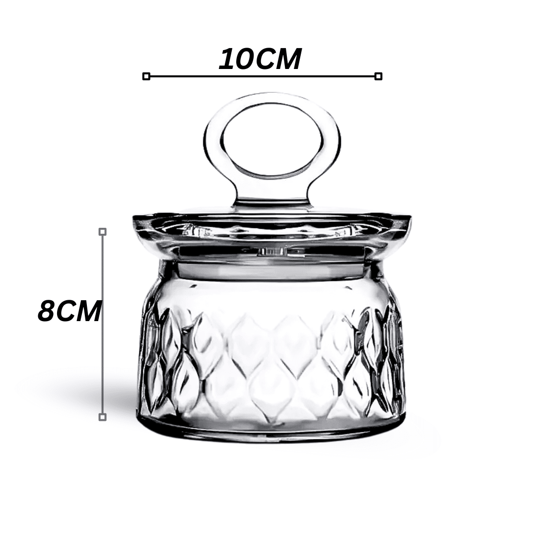 - يشمل غطاء زجاجي آمن: يأتي مع غطاء زجاجي مطابق، مصمم بمقبض حلقي عملي لسهولة الفتح وإغلاق محكم للحفاظ على المحتويات طازجة داخل هذا البرطمان الزجاجي بنمط الأوراق.