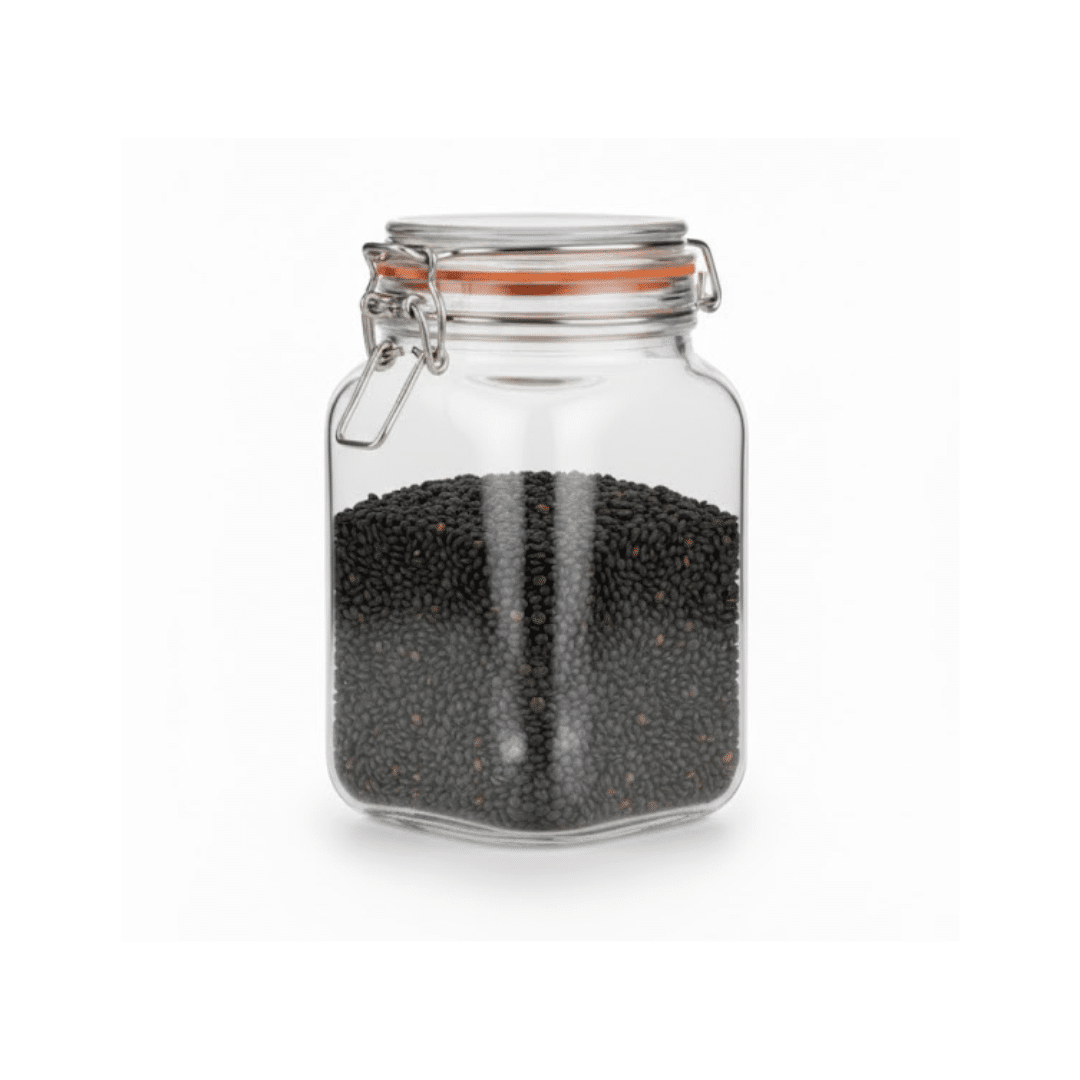 غطاء محكم الإغلاق: نظام قفل معدني مع سدادة سيليكون تمنع دخول الهواء والرطوبة وتحافظ على الطعام طازجًا لفترة أطول.