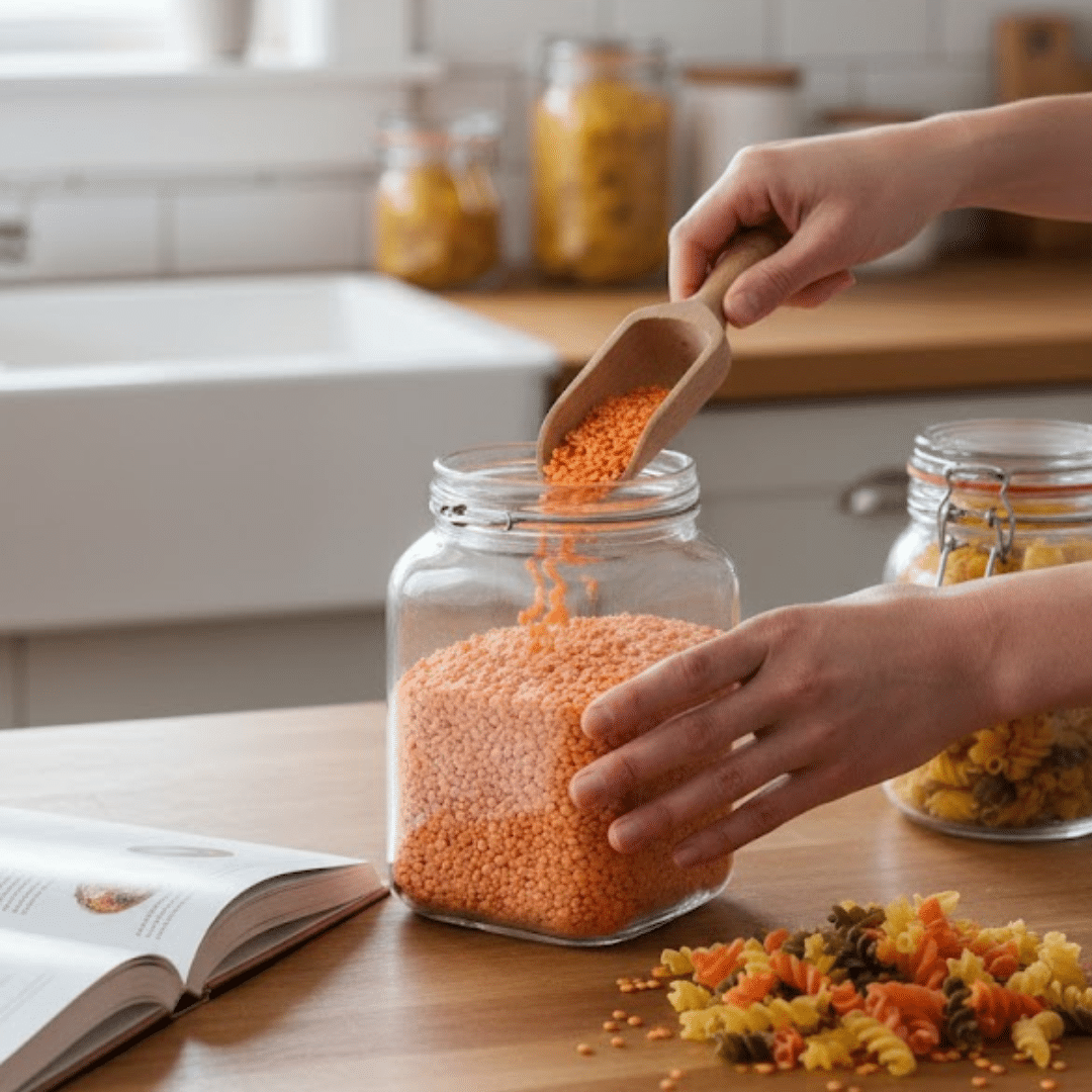 متعدد الاستخدامات: مناسب لتخزين العدس، الفاصوليا، الأرز، السكر، الدقيق، الحلويات، البسكويت، المعكرونة، الحبوب وغيرها من المواد الجافة.