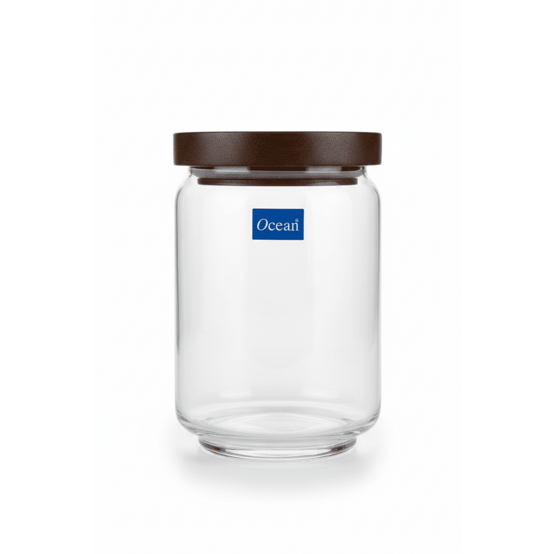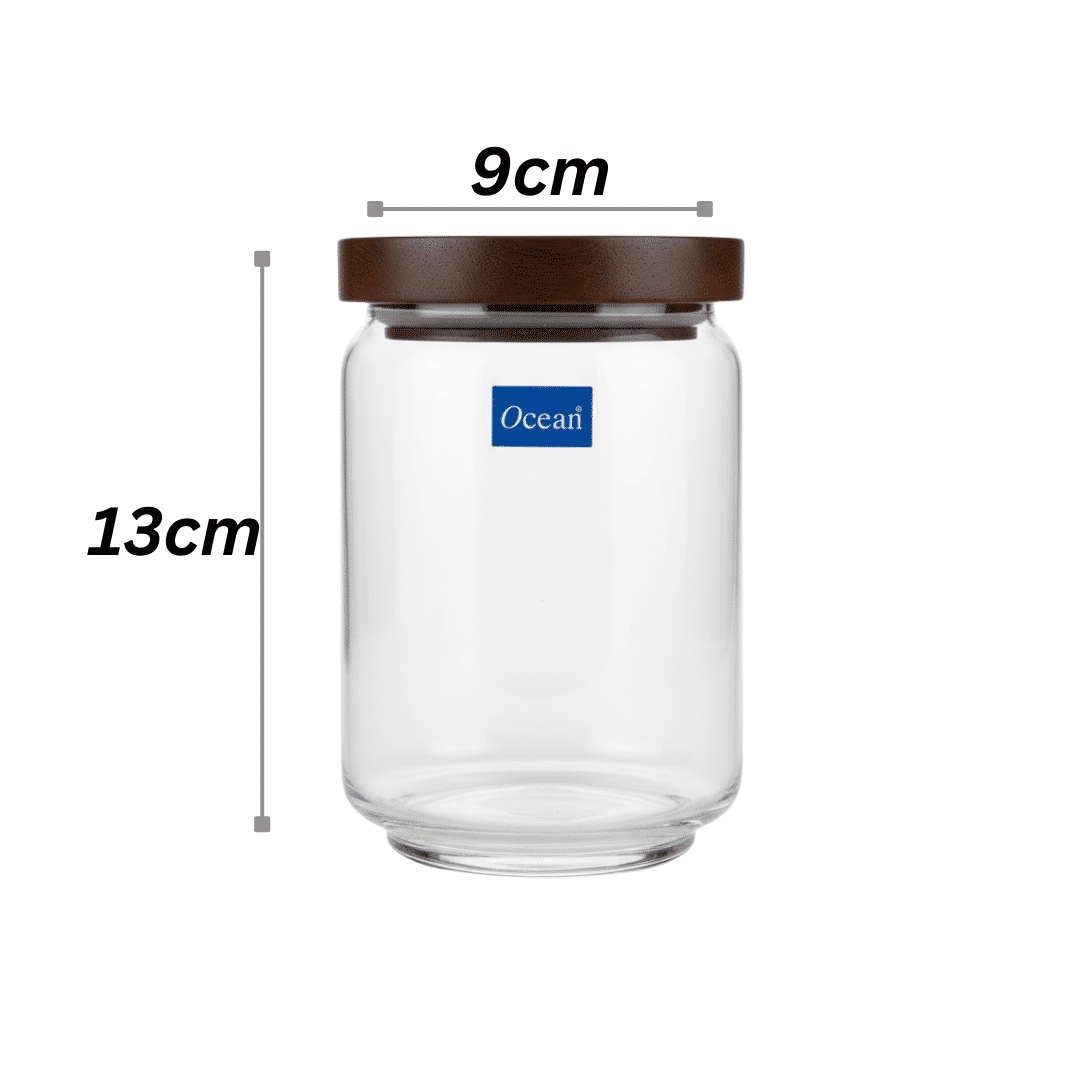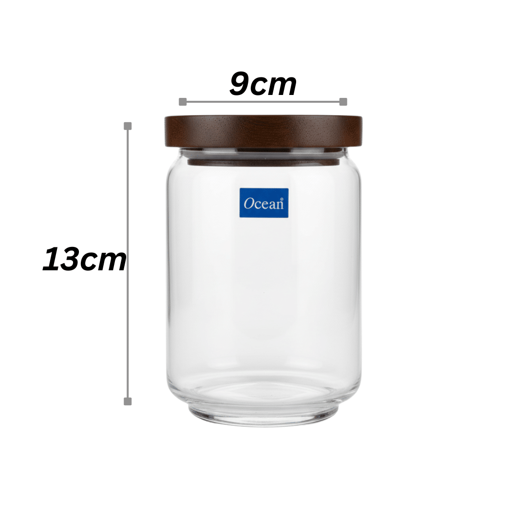 برطمان زجاجي من أوشن بوب سعة 650 مل مع غطاء خشبي – وعاء محكم الإغلاق لتخزين السكر والتوابل والمكسرات والأطعمة الجافة – صنع في تايلاند