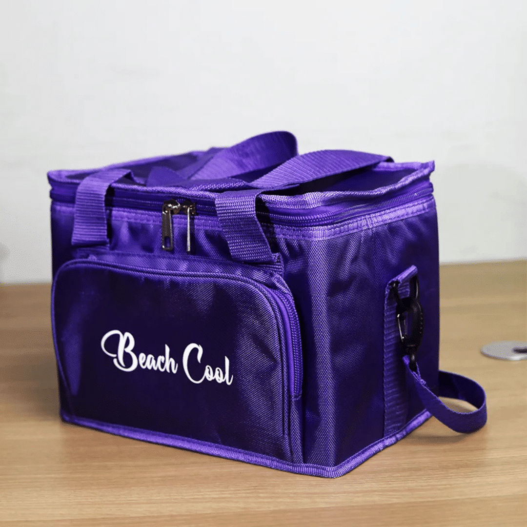 حقيبة غداء مبطنة باللون البنفسجي بسعة 15 لتر مع حزام قابل للتعديل