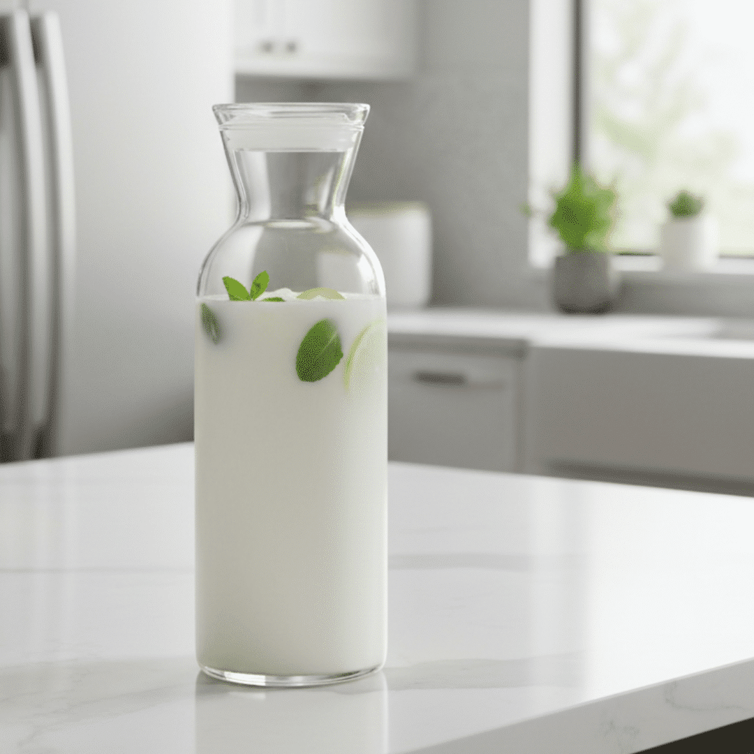 غطاء زجاجي محكم الإغلاق: مزود بغطاء زجاجي آمن ومحكم الإغلاق يحافظ على النضارة والنقاء الطبيعيين لمشروباتك مع حمايتها من الغبار والروائح المنزلية.