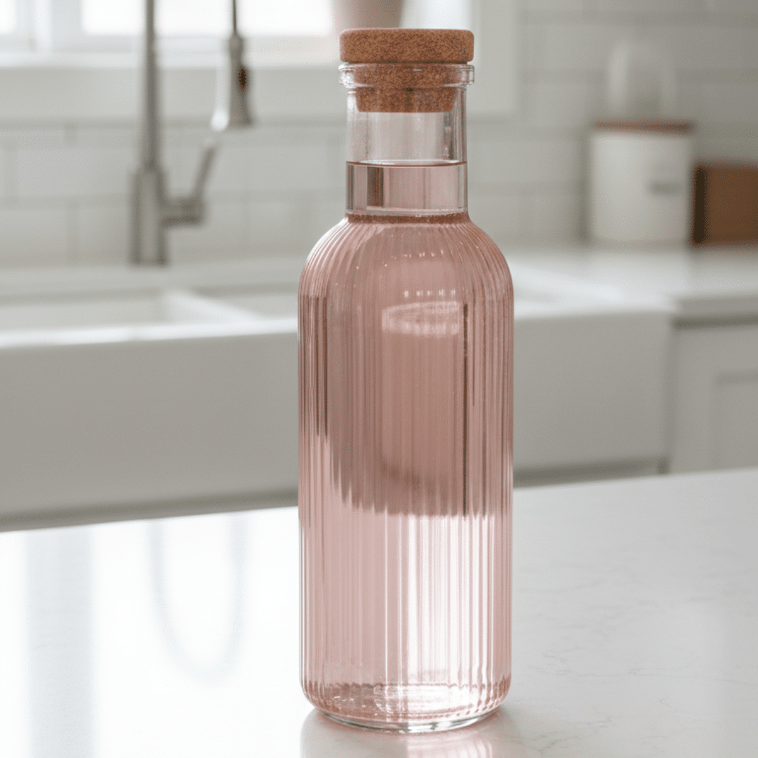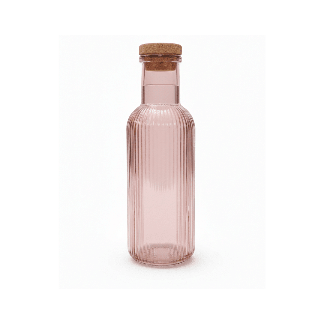 زجاجة ماء زجاجية – 1 لتر | تصميم وردي مضلع مع غطاء من الفلين
