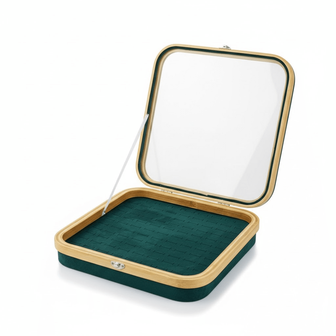 - غطاء زجاجي: يحمي مجوهراتك من الغبار ويعرض مجموعتك.