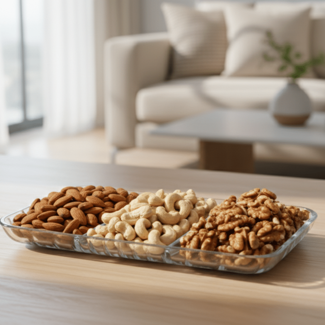 حجم التقديم المثالي: يبلغ قياسه 27.6 × 16.2 سم، وهو مثالي لتقديم المكسرات المشكلة والفواكه المجففة والزيتون والحلويات أو المقبلات.