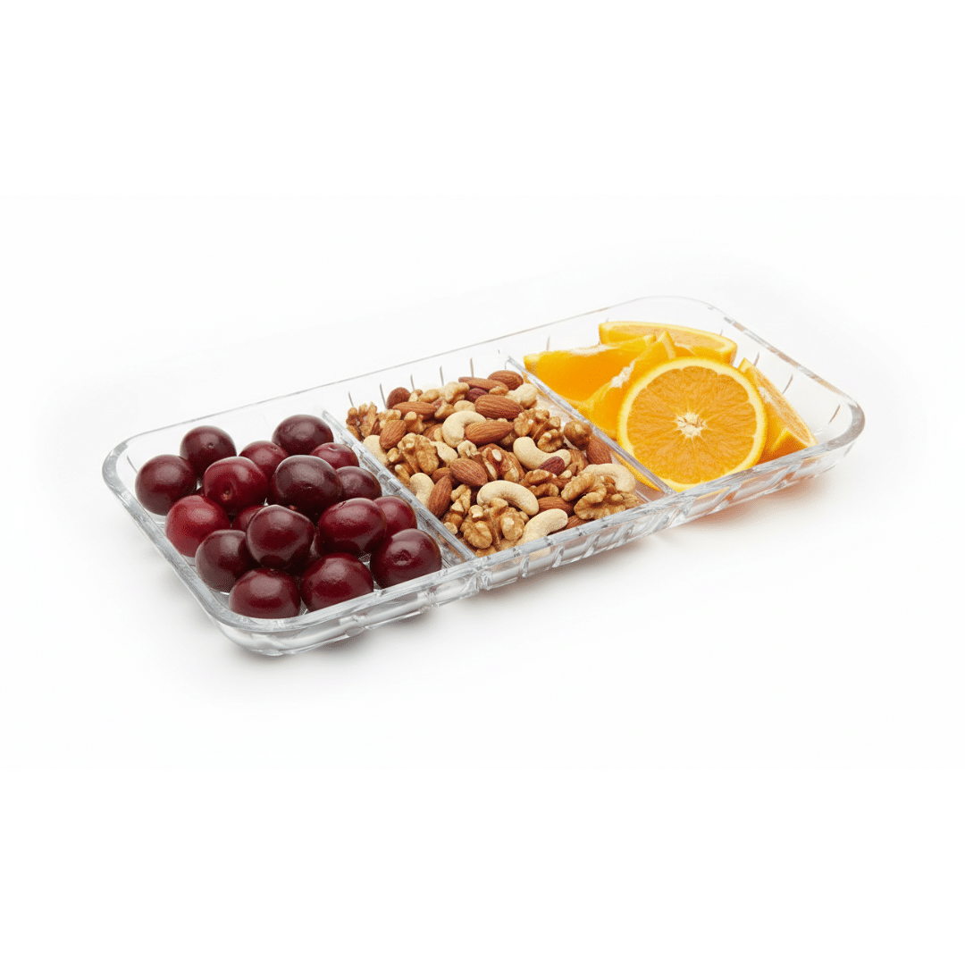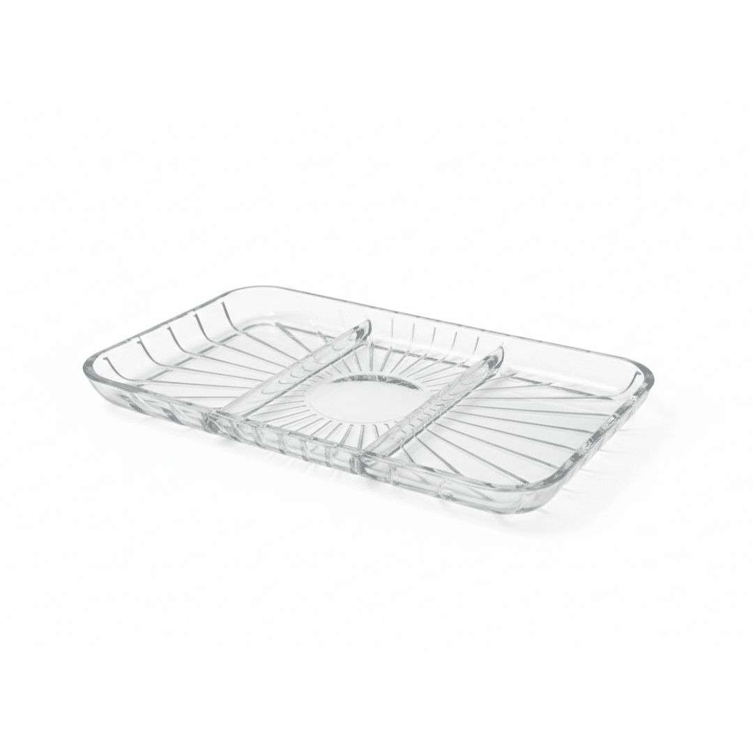 قدمي الوجبات الخفيفة والمقبلات بأناقة باستخدام طبق التقديم الزجاجي المقسم الأنيق من باشاباشي، المصمم لإضفاء التنظيم والرقي على مائدتك.