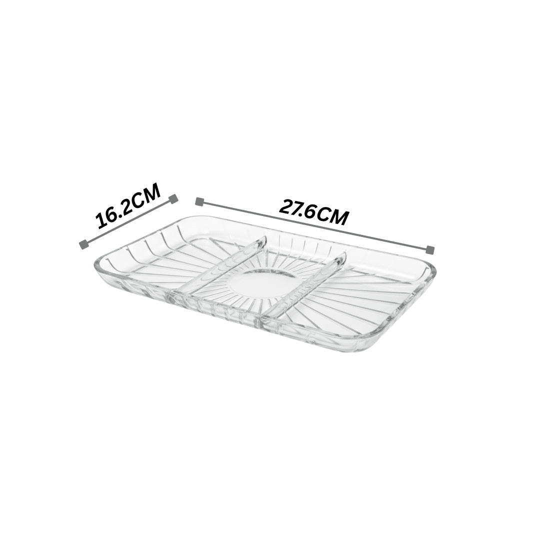 طبق تقديم زجاجي أنيق مقسم من باشاباشي، 27.6 × 16.2 سم – صينية تقديم مستطيلة شفافة مقسمة للمكسرات والوجبات الخفيفة والفواكه والمقبلات – صنع في تركيا