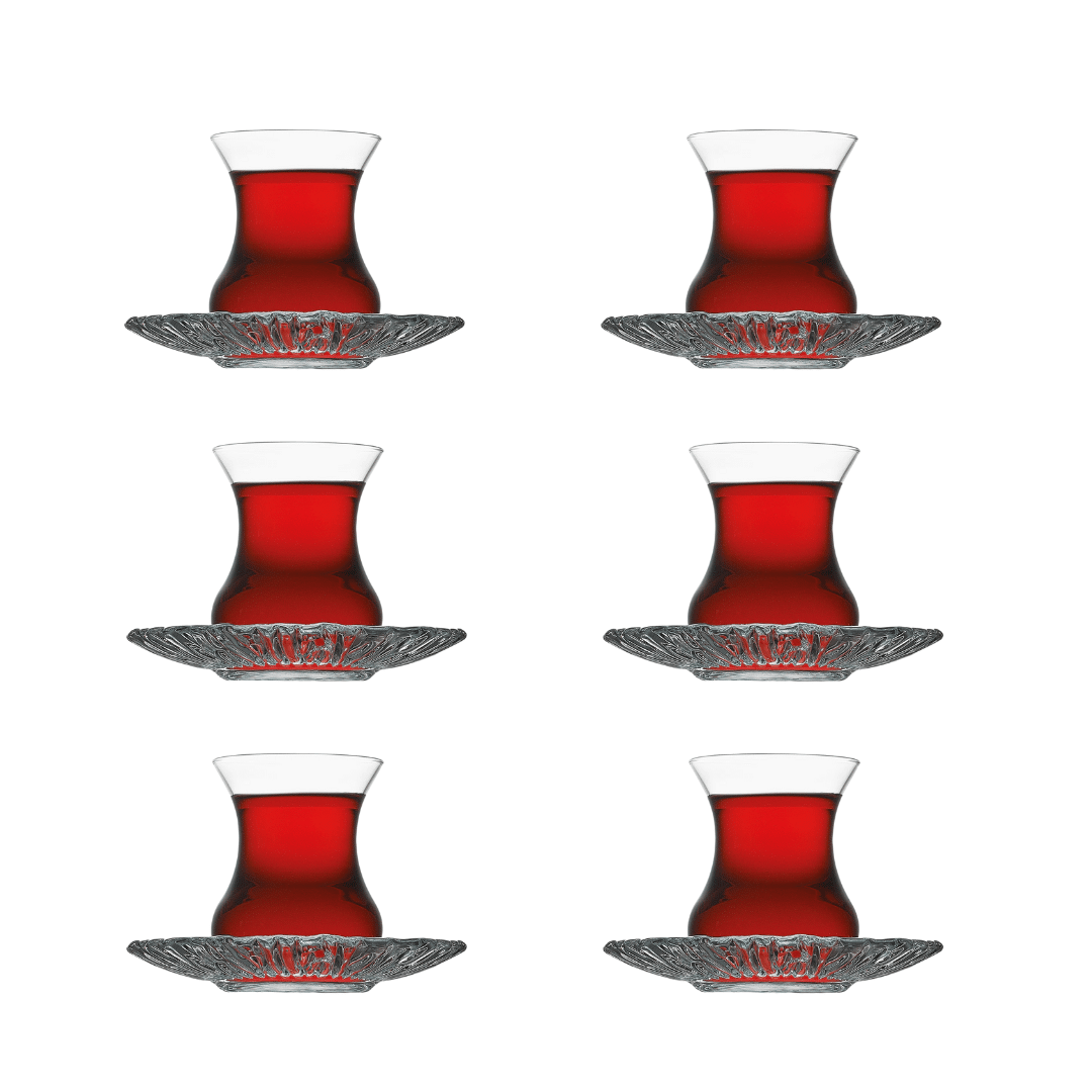 - ستة أكواب شاي استكانة (155 مل): أكواب صغيرة أنيقة مثالية للاستمتاع بالشاي التركي أو العربي.