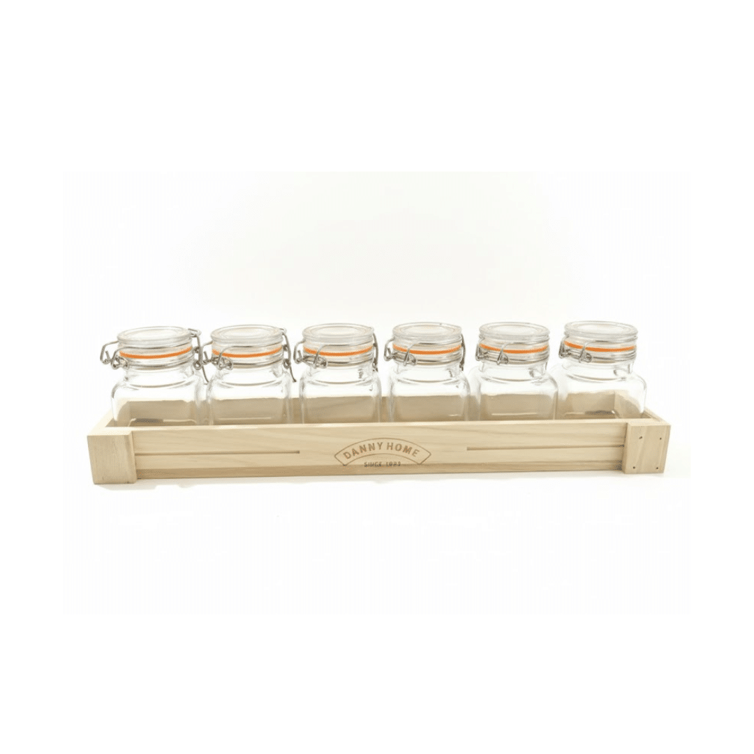 طقم برطمانات توابل مع قاعدة خشبية – 6 قطع × 100 مل