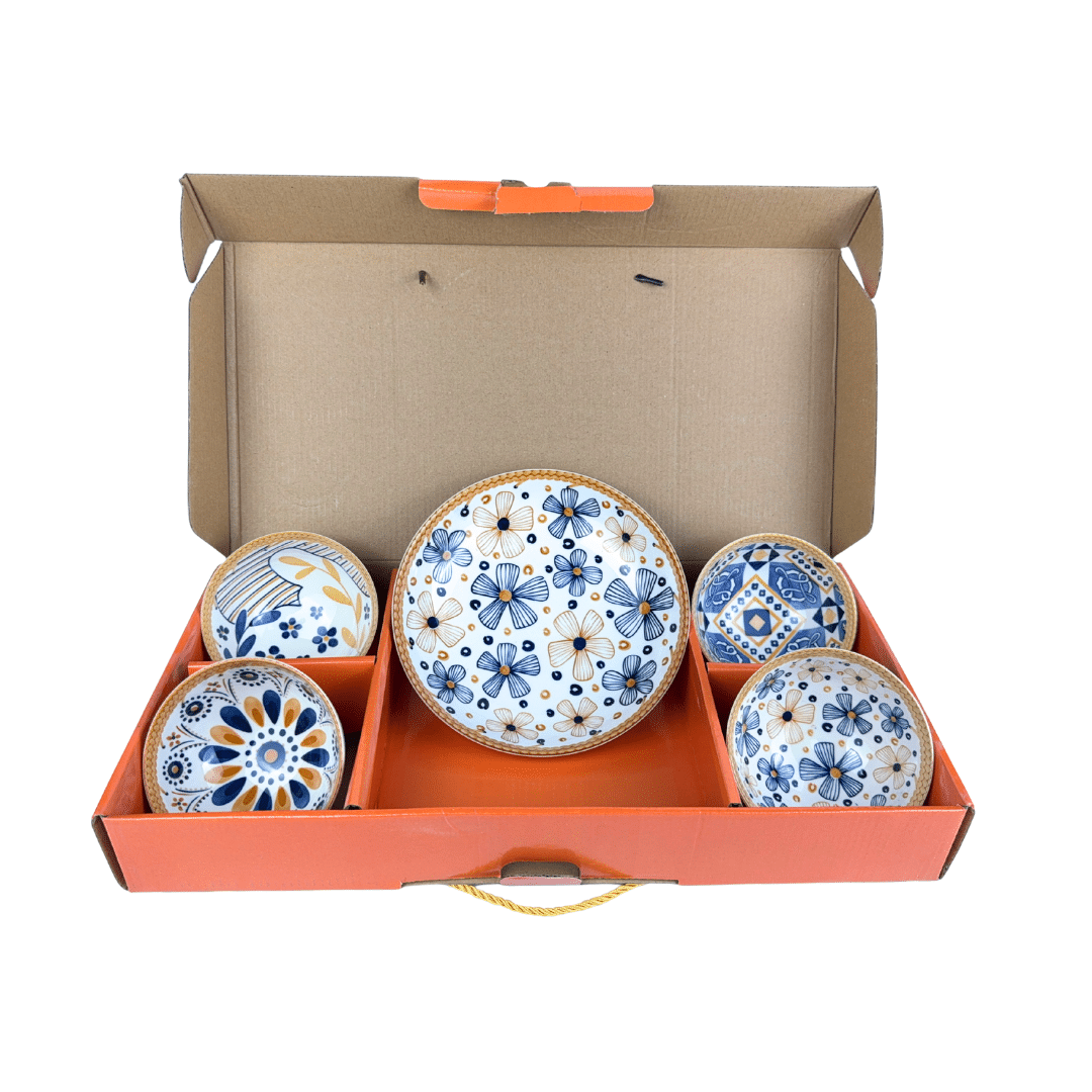 - مجموعة كاملة من 5 قطع: تتضمن أربعة (4) أوعية عميقة متعددة الاستخدامات ( قطرها 12 سم ) وطبق تقديم مركزي واحد (1) ( قطرها 21 سم )، مثالية للمقبلات أو المقبلات أو إعدادات الأماكن الفردية.