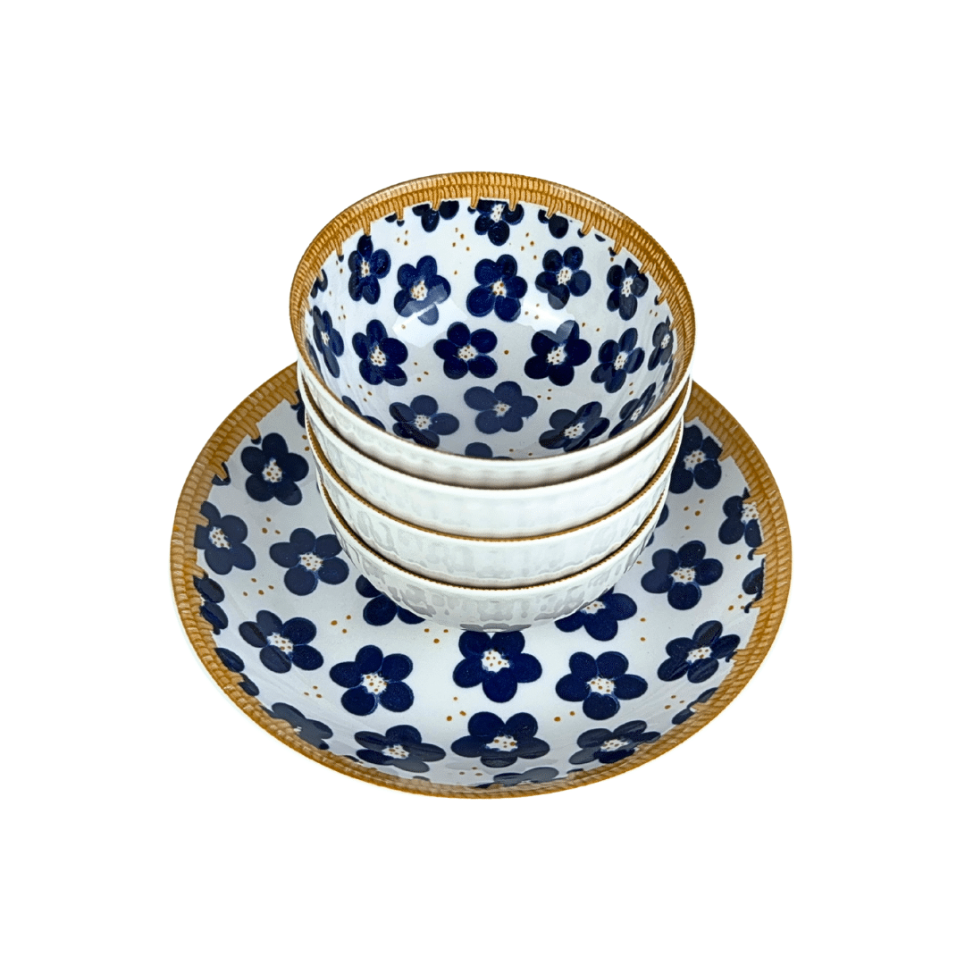 طقم بولات سلطة وشوربة من البورسلين مكون من 5 قطع (4 بولات عميقة 12 سم + طبق واحد 21 سم)