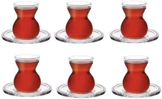 طقم شاي تركي من 6 أكواب مع 6 أطباق فناجين من باشابتشى- 140 مل – صناعة تركية