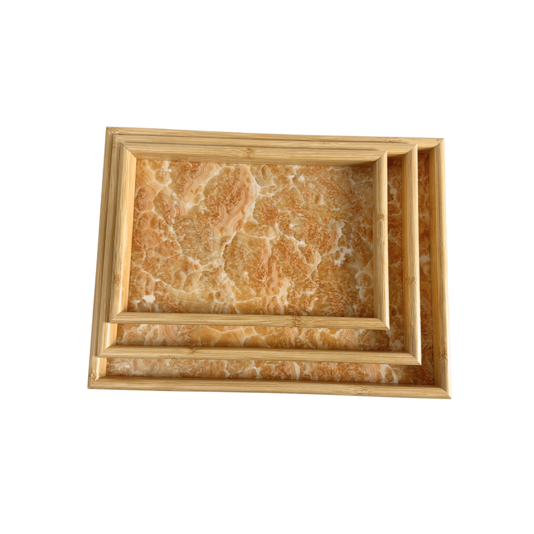 مجموعة من 3 أحجام مختلفة: تتضمن ثلاث صواني مستطيلة – كبيرة (40 × 30 سم)، ومتوسطة (35 × 24 سم)، وصغيرة (30 × 20 سم) – مثالية للاستخدام المتنوع في مطبخك أو منطقة تناول الطعام أو إعداد التقديم.