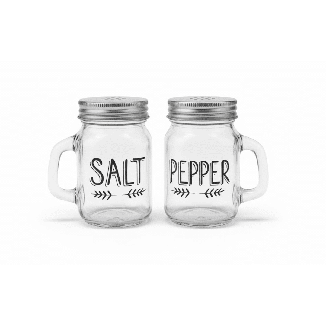 طقم علب ملح وفلفل بتصميم جرة الماسون – سعة 120 مل (قطعتان)