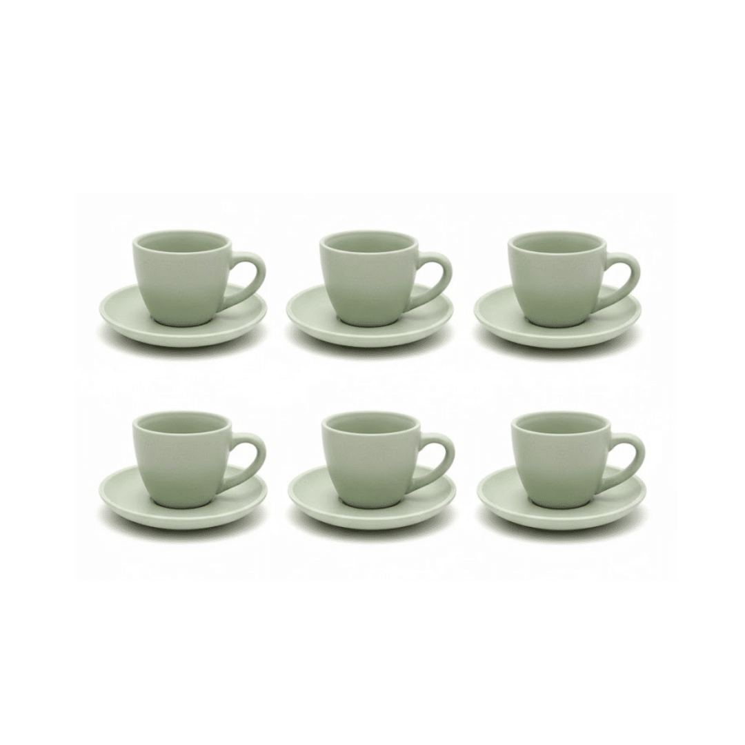 طقم فناجين قهوة داني هوم بورسلين 80 مل مع صحن، 12 قطعة، لون أخضر أنيق