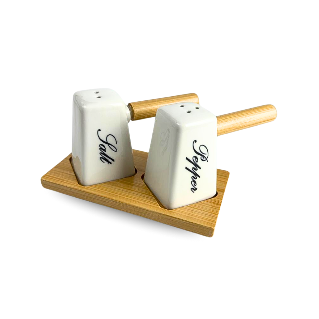 - المجموعة الكاملة: تتضمن وعاء ملح ووعاء فلفل، منظمين بشكل أنيق على قاعدة من الخيزران.