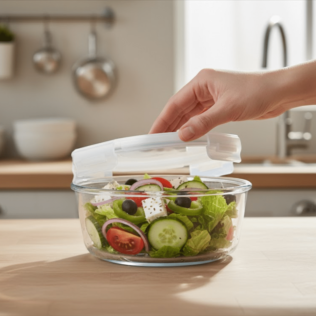 مواد آمنة وصحية: الغطاء خالٍ من BPA والزجاج غير قابل لامتصاص الروائح أو التصبغات.