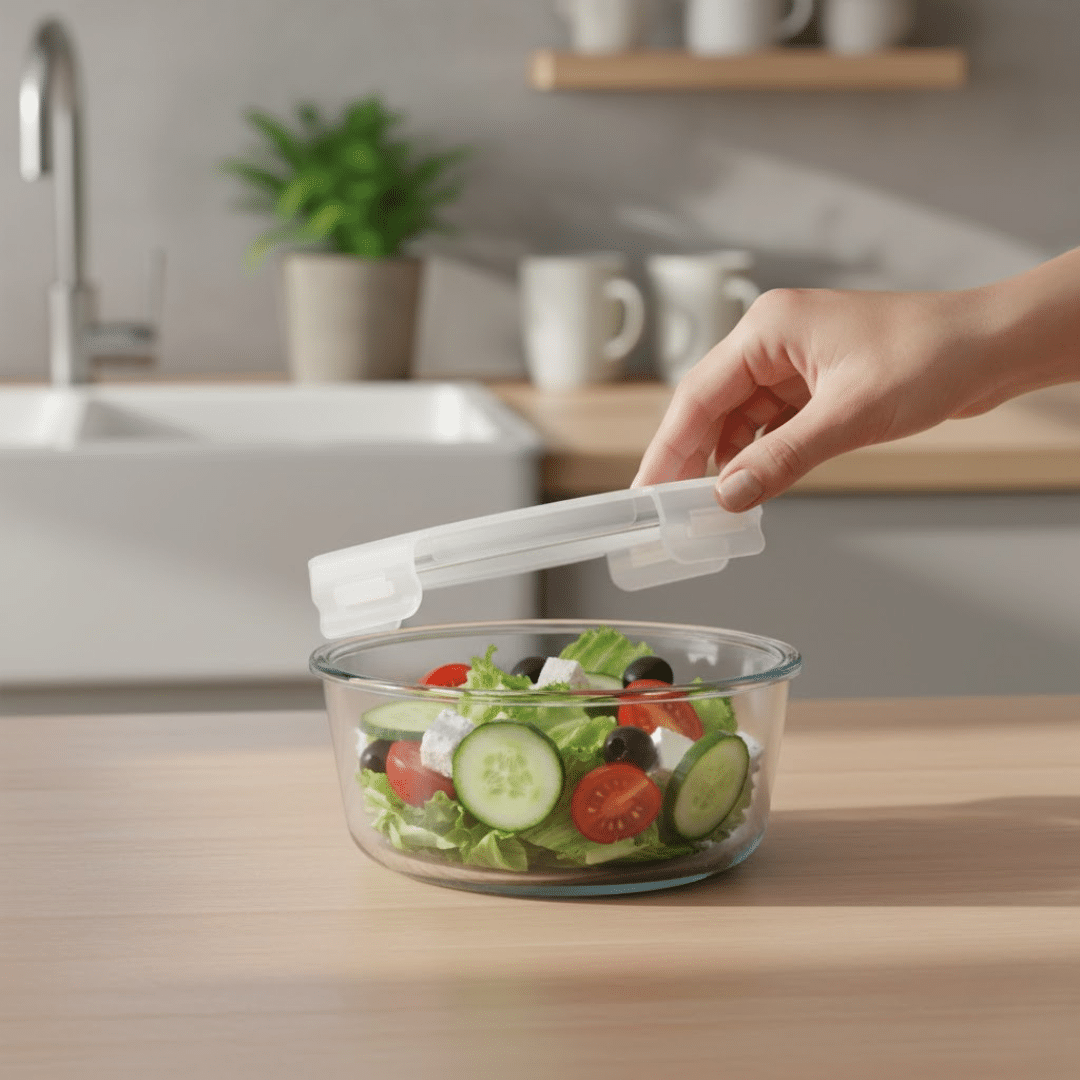 مواد آمنة وصحية: الغطاء خالٍ من BPA والزجاج غير قابل لامتصاص الروائح أو التصبغات.