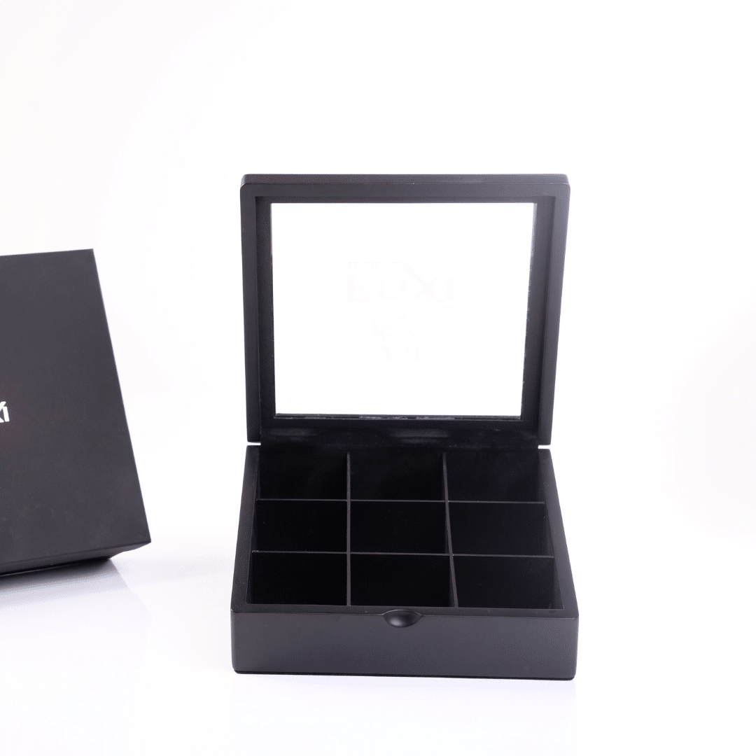 - تصميم مخصص بـ 9 فتحات: يتميز بتسع حجرات فردية لتنظيم وعرض مجموعة أكياس الشاي الخاصة بك بشكل أنيق.