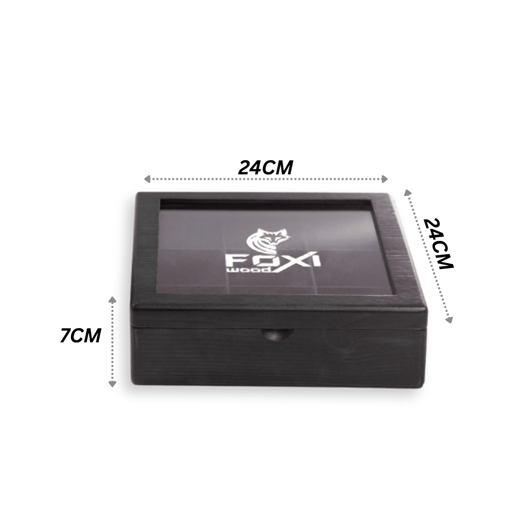 علبة شاي خشبية فاخرة من فوكسي وود – 9 فتحات –أسود