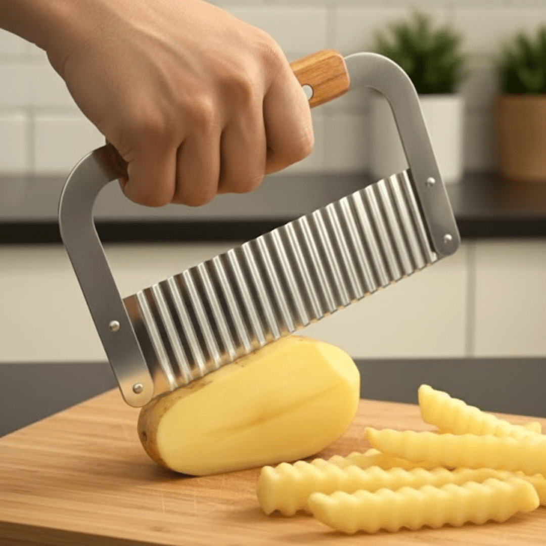 قاطع خضار متموّج بمقبض خشبي – سكين تمويج لتقطيع البطاطس والخضروات والفواكه – شفرة فولاذ مقاوم للصدأ