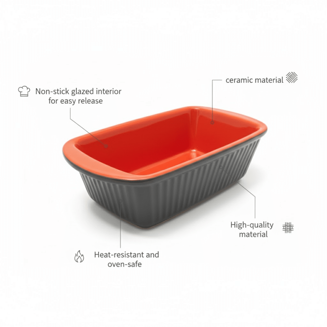 استمتِع بخبز الكيكات والخبز والمعجنات بسهولة مع قالب الخَبز الخزفي من داني هوم. يتميز بتصميم أنيق وبطانة داخلية لامعة تمنحك توزيع حرارة مثالي ونتائج ممتازة مع كل استخدام. مناسب للكيك الإنجليزي، خبز الموز، اللازانيا، الخضار المشوية وغيرها.