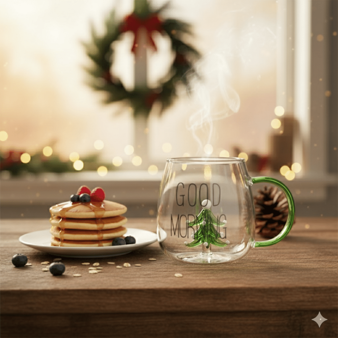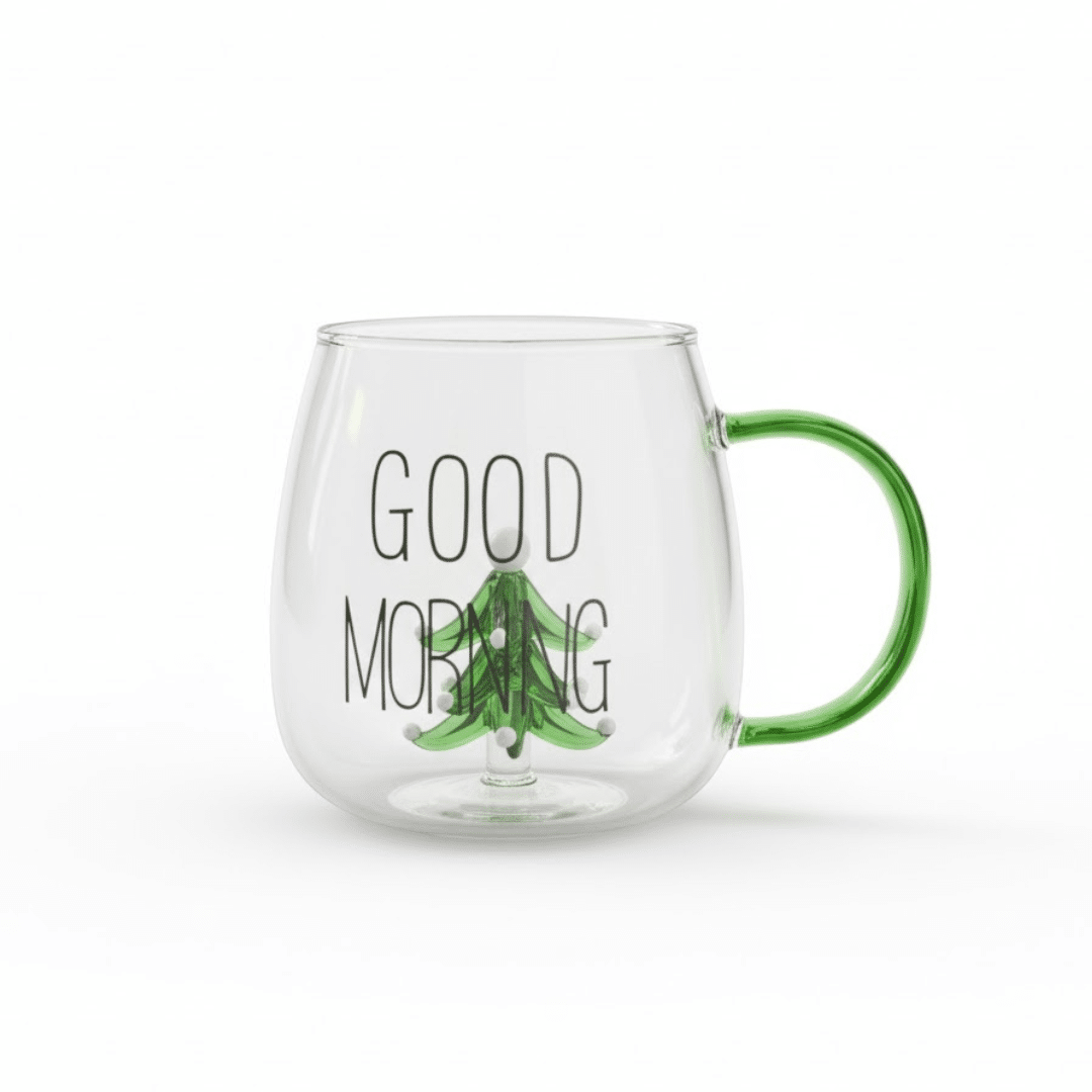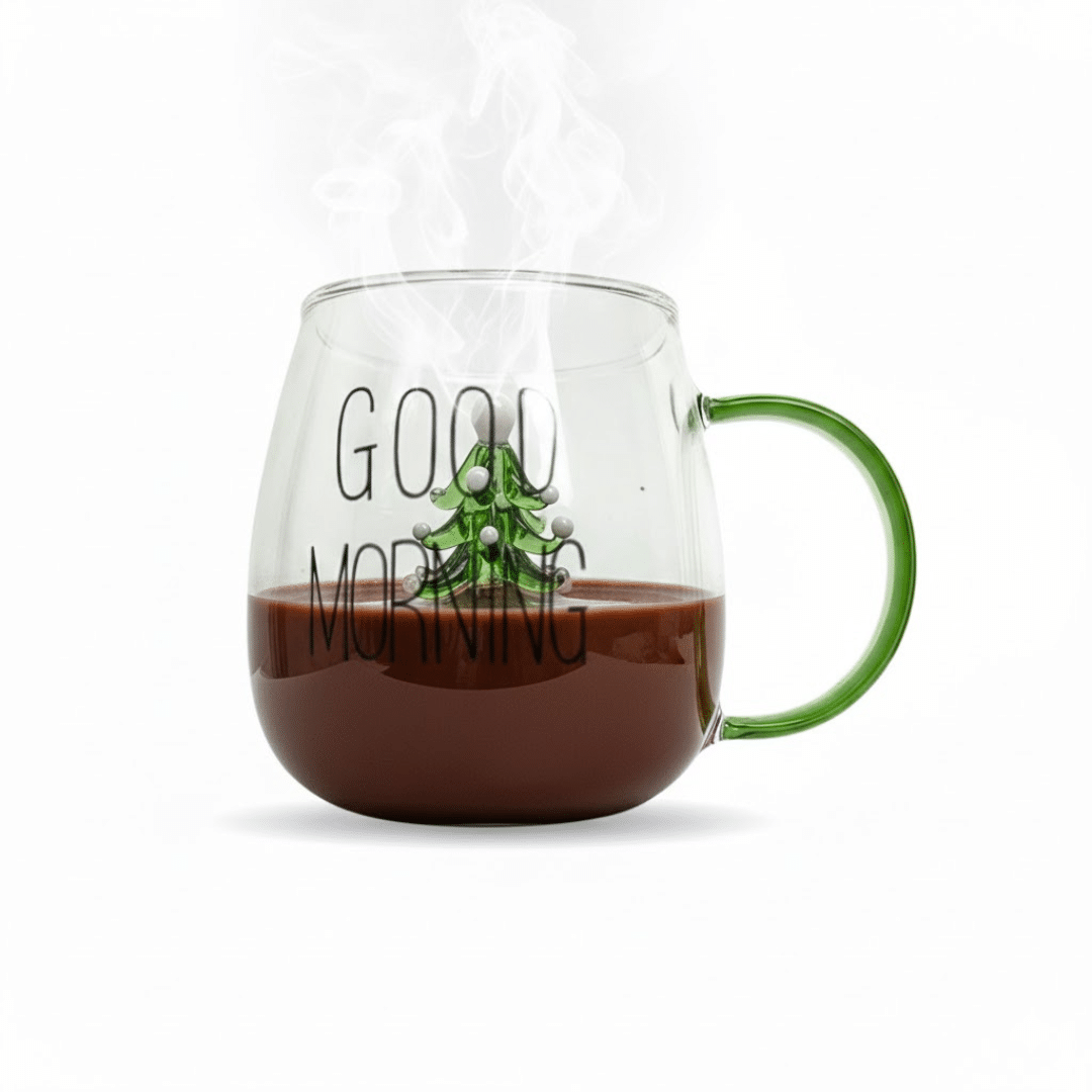 كوب زجاجي شكل كريسماس ثلاثي الأبعاد للشاي والقهوة من زجاج البورسليكات المقاوم للحرارة بمقبض – 400 مل