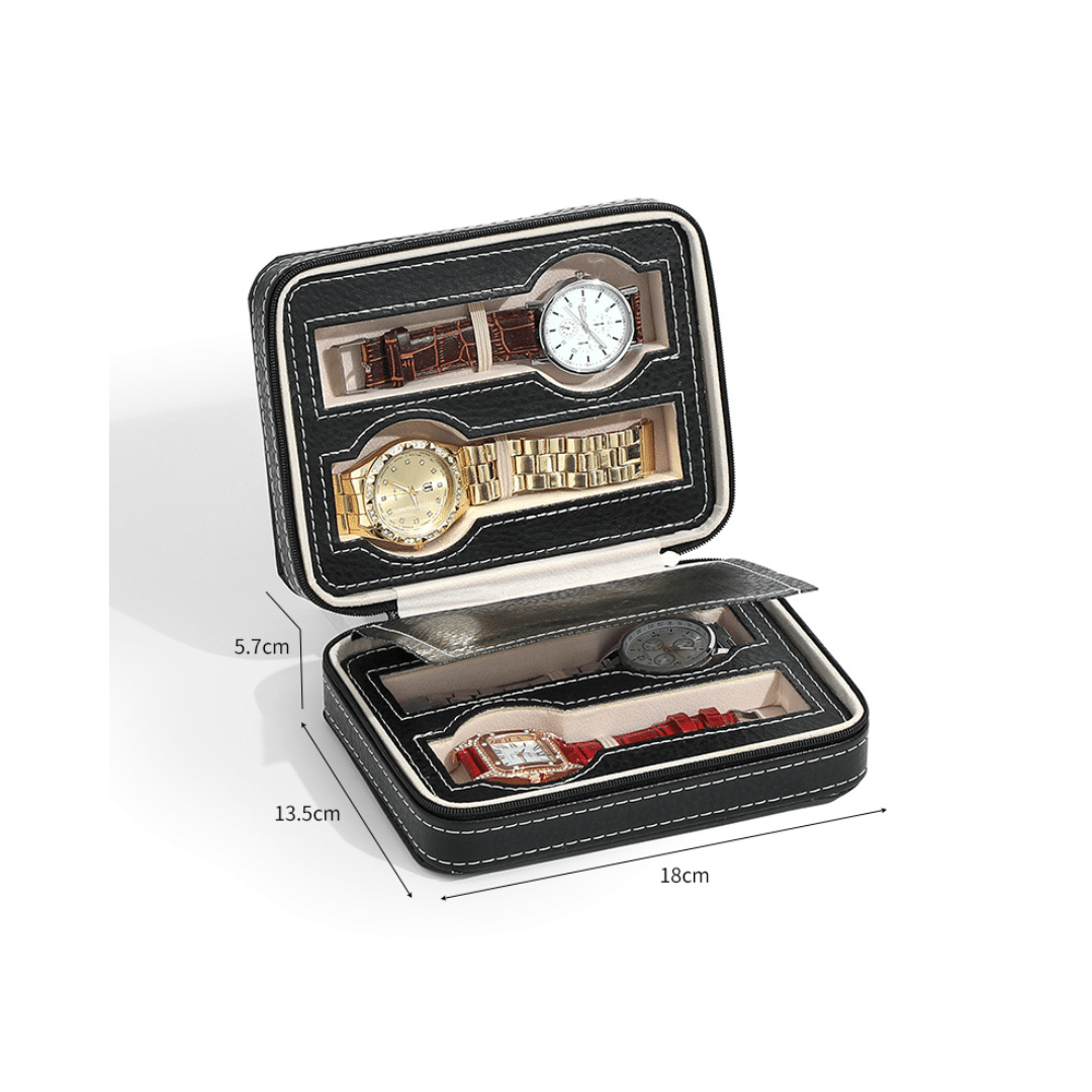 محفظة ساعة محمولة بسحاب للسفر (أسود) مع 4 فتحات