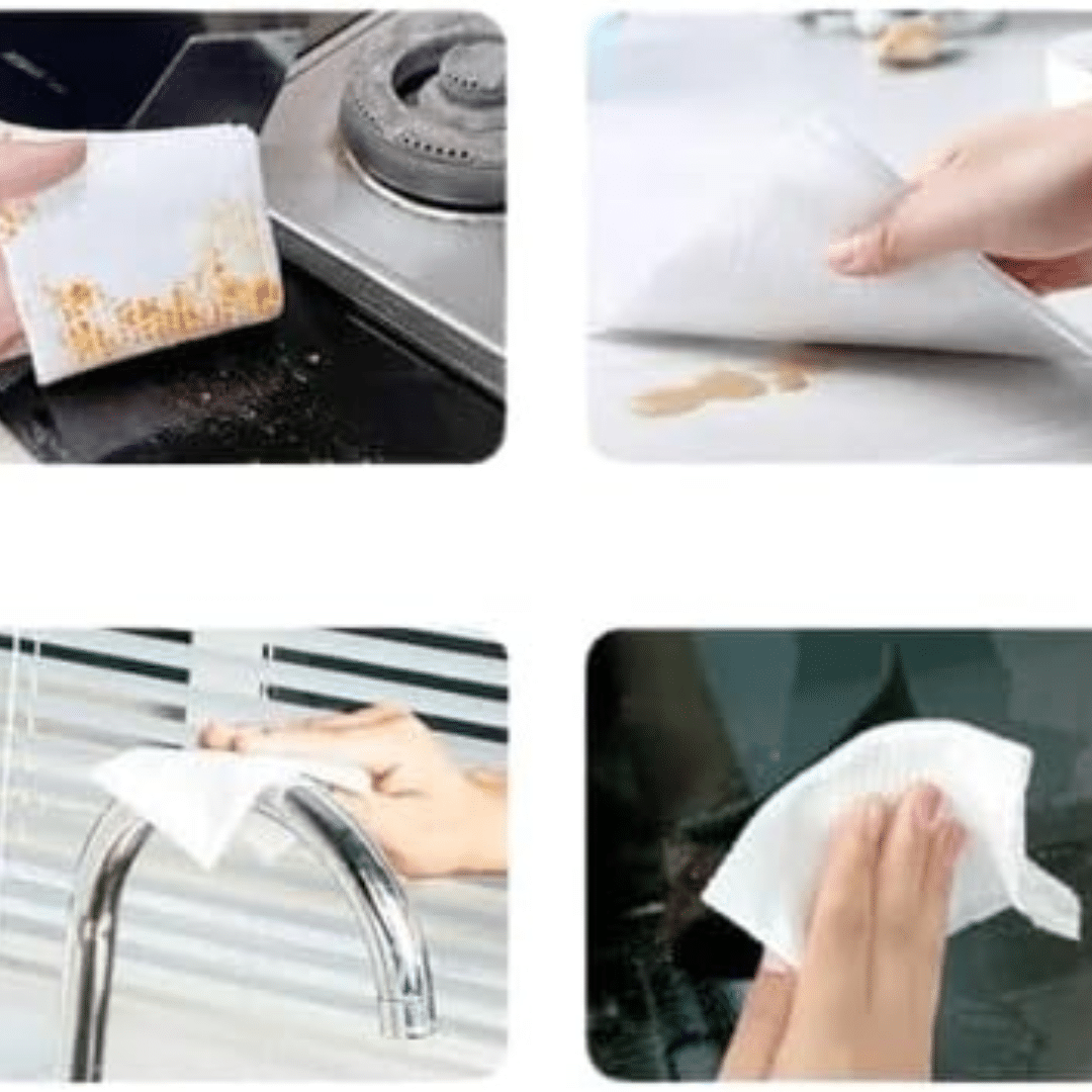 - تحتوي كل منديل على مكون فعال قوي يُمكّنك من إزالة الدهون والأوساخ العنيدة بسهولة. فعاليتها واضحة بشكل خاص في المناطق الصعبة، مما يجعل التنظيف سريعًا وخاليًا من المتاعب.