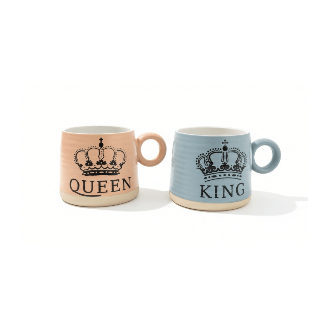 Couple Mug Set – King & Queen Ceramic Cups (2 Pieces)- 425ml