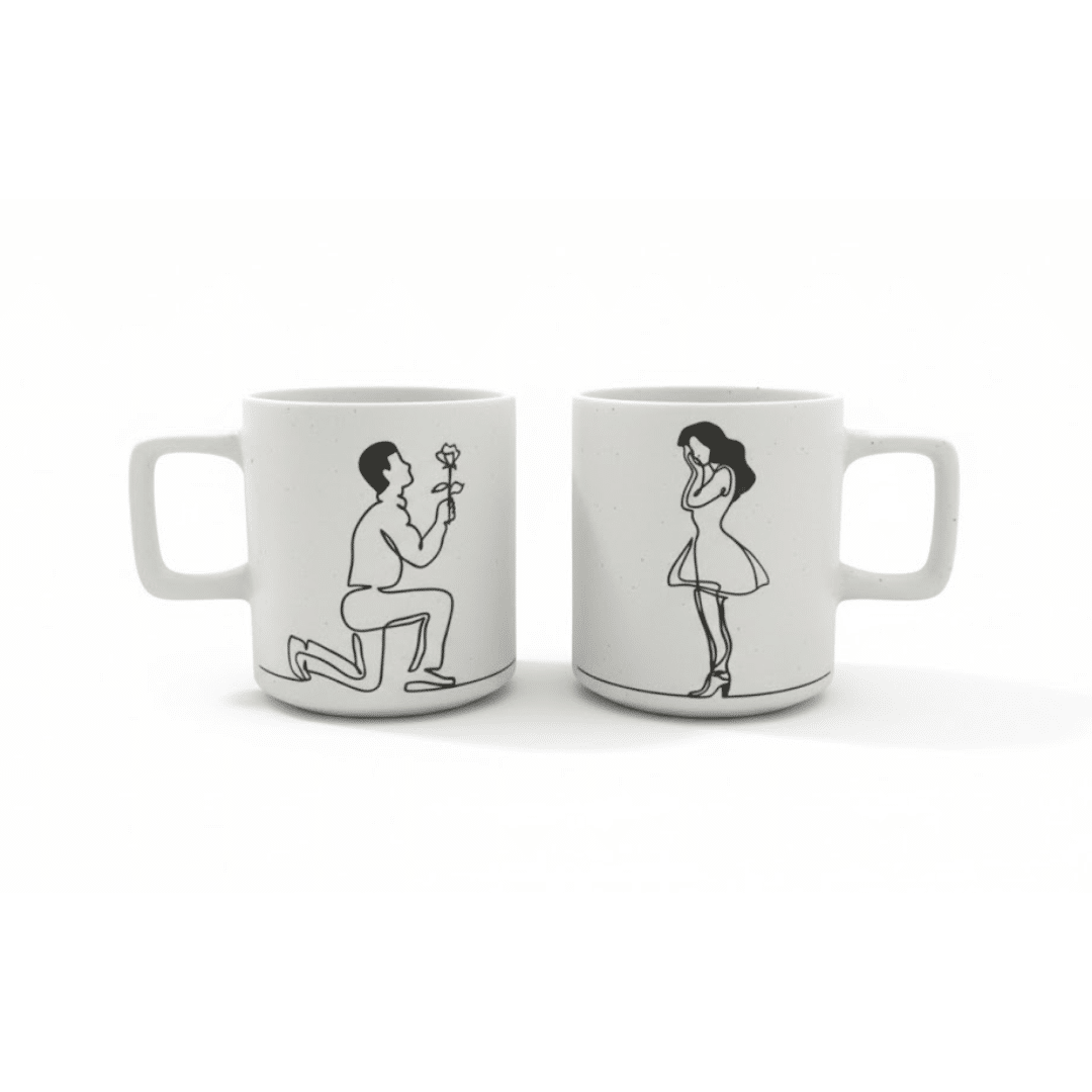 Couple Mug Set – Romantic Proposal Design Ceramic Cups (2 Pieces) 400ml
