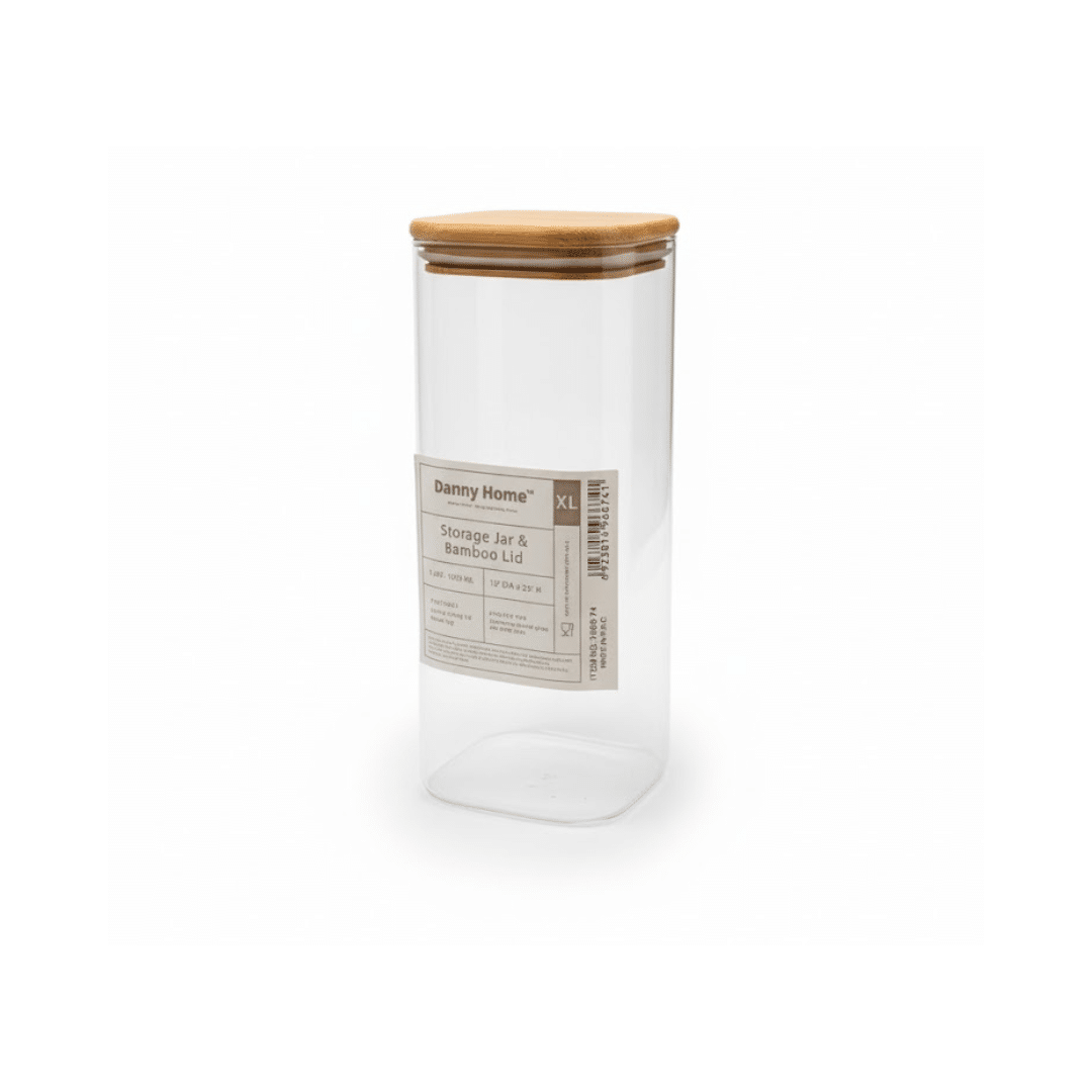 Danny Home Glass Storage Jar with Bamboo Lid – 1900 ml