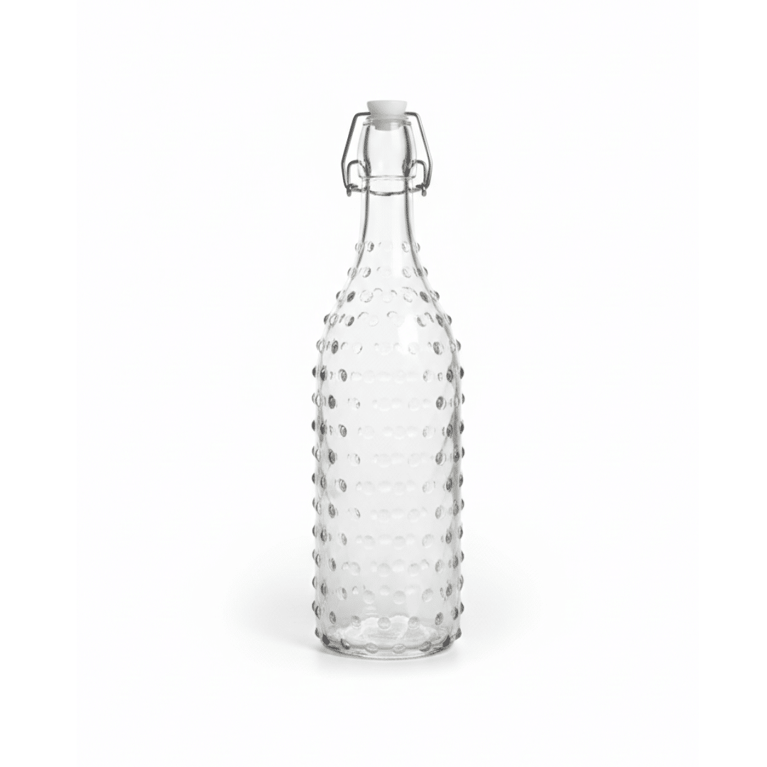 Danny Home Glass Water Bottle 1 Litre – Textured Shape Design with Swing Top Lid, Leak-Proof Airtight Glass Bottle for Water, Juice & Beverages (Reusable & Eco-Friendly)
