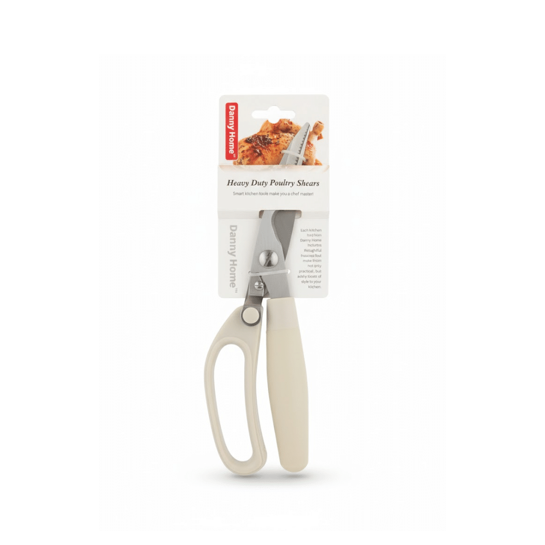 Danny Home Heavy-Duty Stainless Steel Kitchen Shears – Multipurpose Poultry Scissors with Soft Grip Handle for Effortless Cutting Beige
