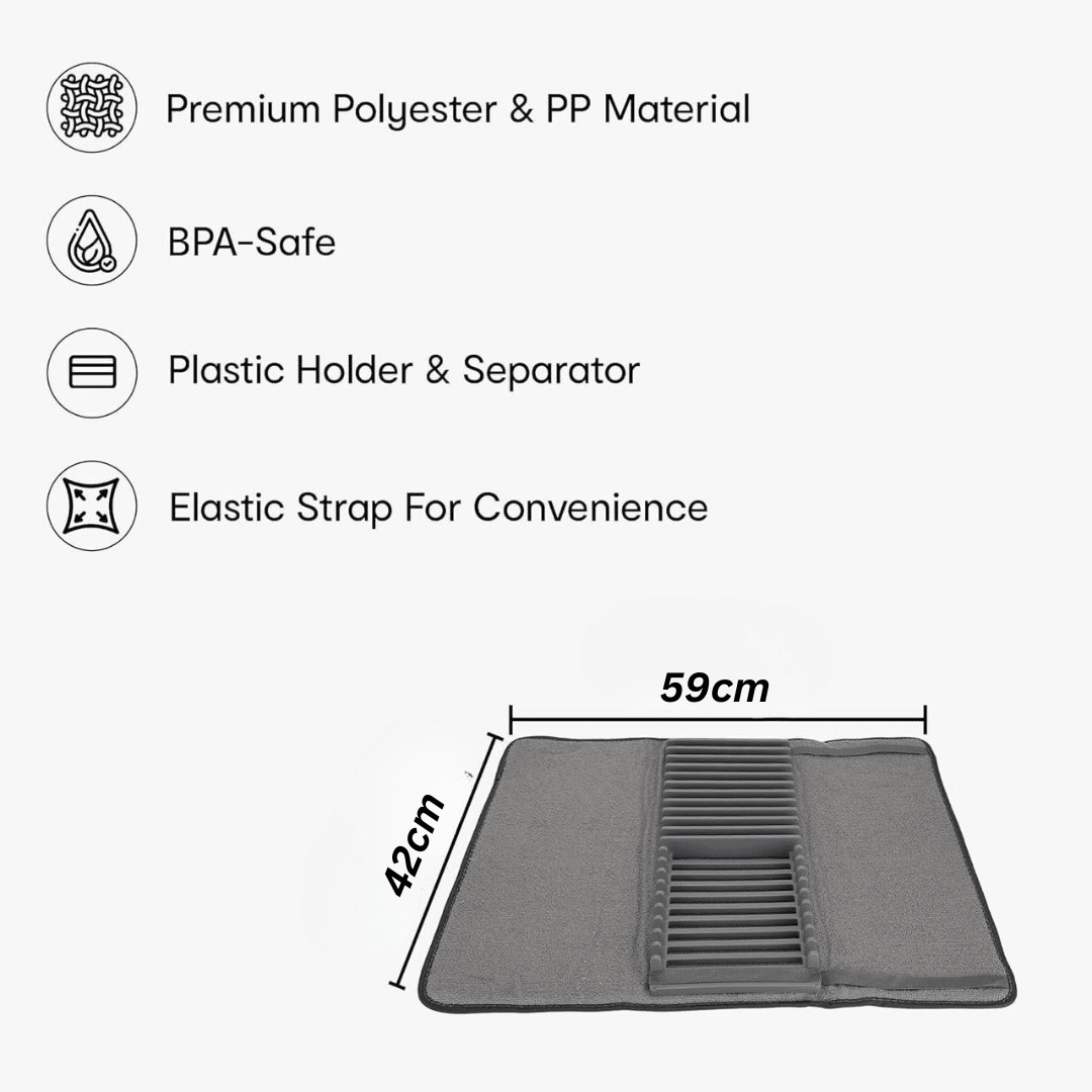 Dish Drying Microfiber Mat with Dish Rack Organizer