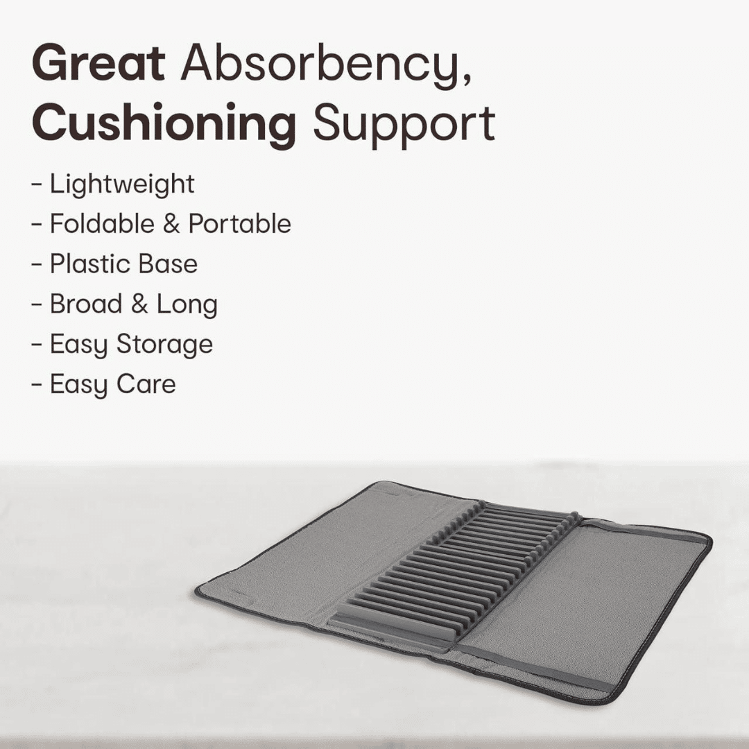 - Superior Absorbency & Cushioning: The premium microfiber mat is made from a blend of Polyester and PP materials, offering great absorbency to quickly soak up water and a soft, cushioning surface to protect your dishes and countertops from scratches.