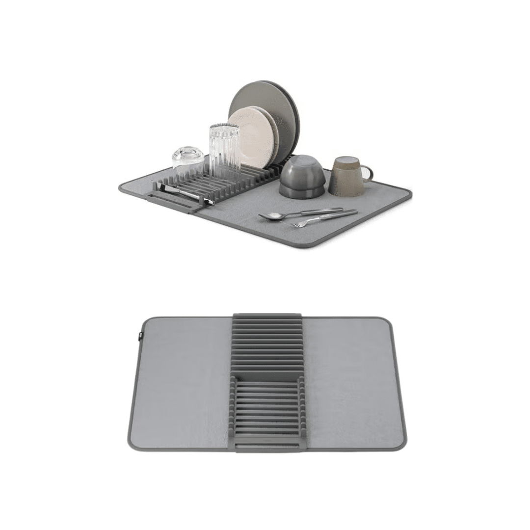 - Integrated Dish Rack & Organizer: The built-in plastic rack and separator are perfect for holding plates upright, while the mat provides ample space for bowls, cups, pots, pans, and silverware.