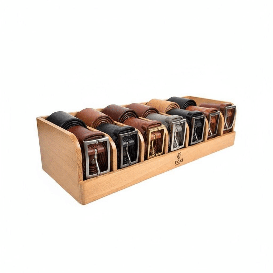 Foxiwood Wooden Belt Organizer With 7 Removable Compartment for Drawer , Dressing Room and Closet