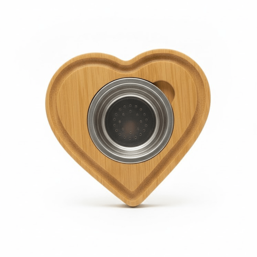 Heart-Shaped Bamboo Tea Strainer – Elegant Loose Leaf Tea Infuser with Stainless Steel Filter for Cups and Mugs
