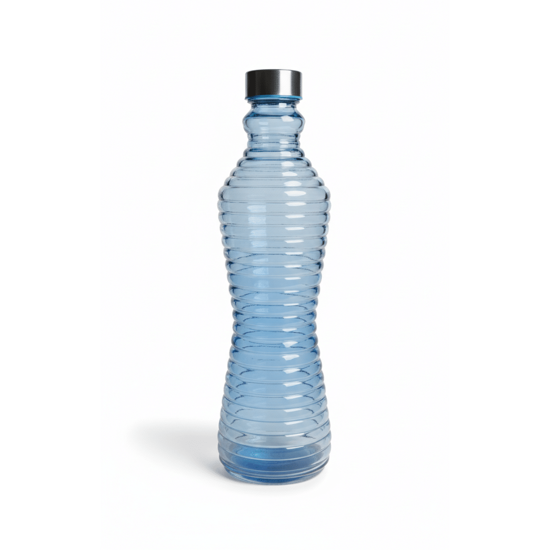 Leak Proof Glass Water Bottle 1 Liter – Blue Ribbed Glass Bottle with Twist Lid,