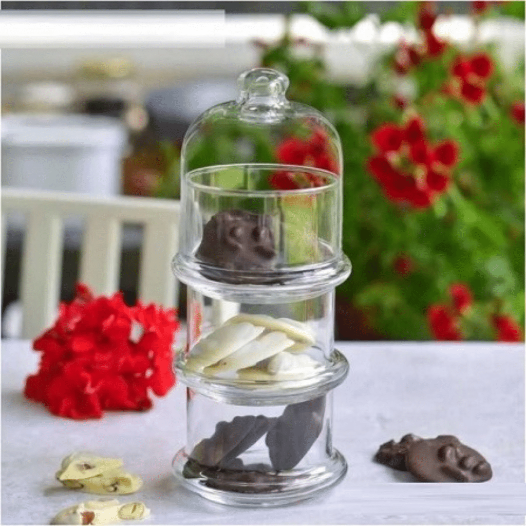 Pasabahce Candy and Treat Jar Three-Tiered Glass with Lid (22.2X9CM) Turkey Made