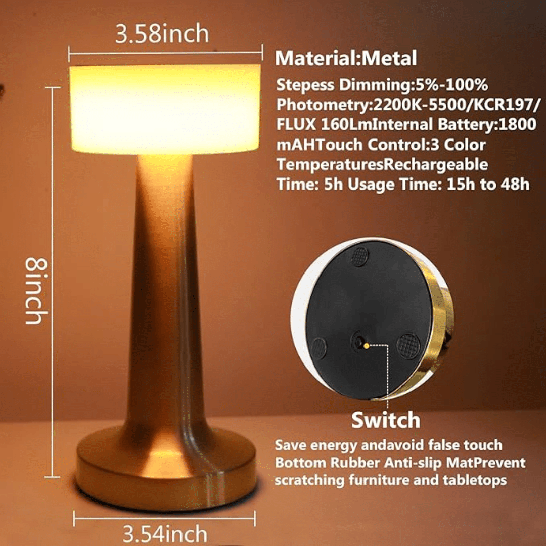 - Portable & Cordless Design: The integrated, rechargeable battery allows the lamp to be used anywhere without needing to be plugged in, making it perfect for desks, bedside tables, or patio use.