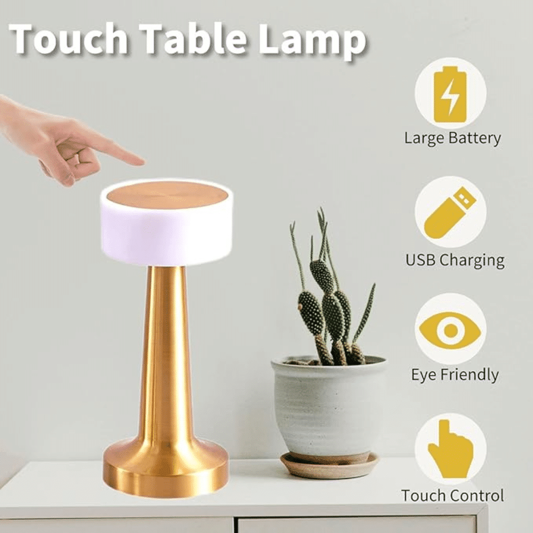 Rechargeable Portable LED Table Lamp with 3 Light Options (White ,Red, Warm) Gold