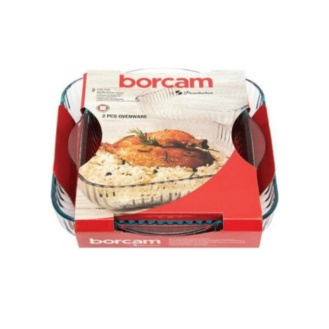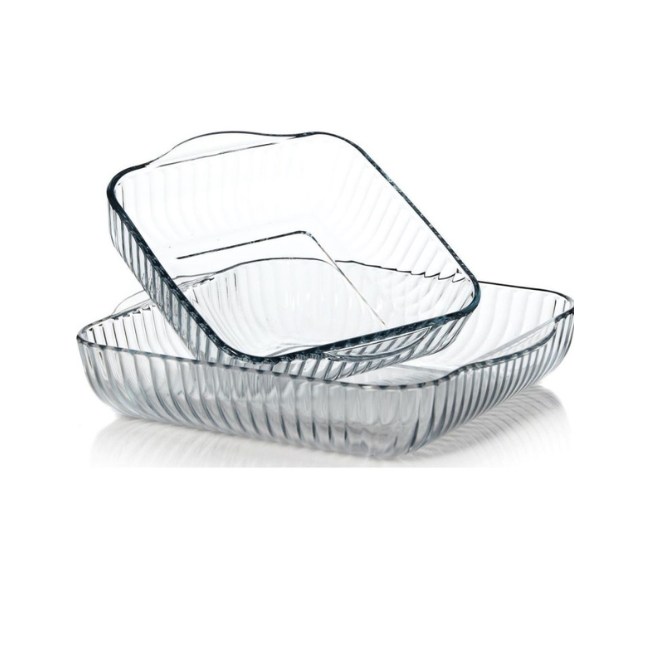 Borcam Ribbed Oven Square Glass Casserole- 2Pcs -(3200ml,1950ml)-Turkey Made