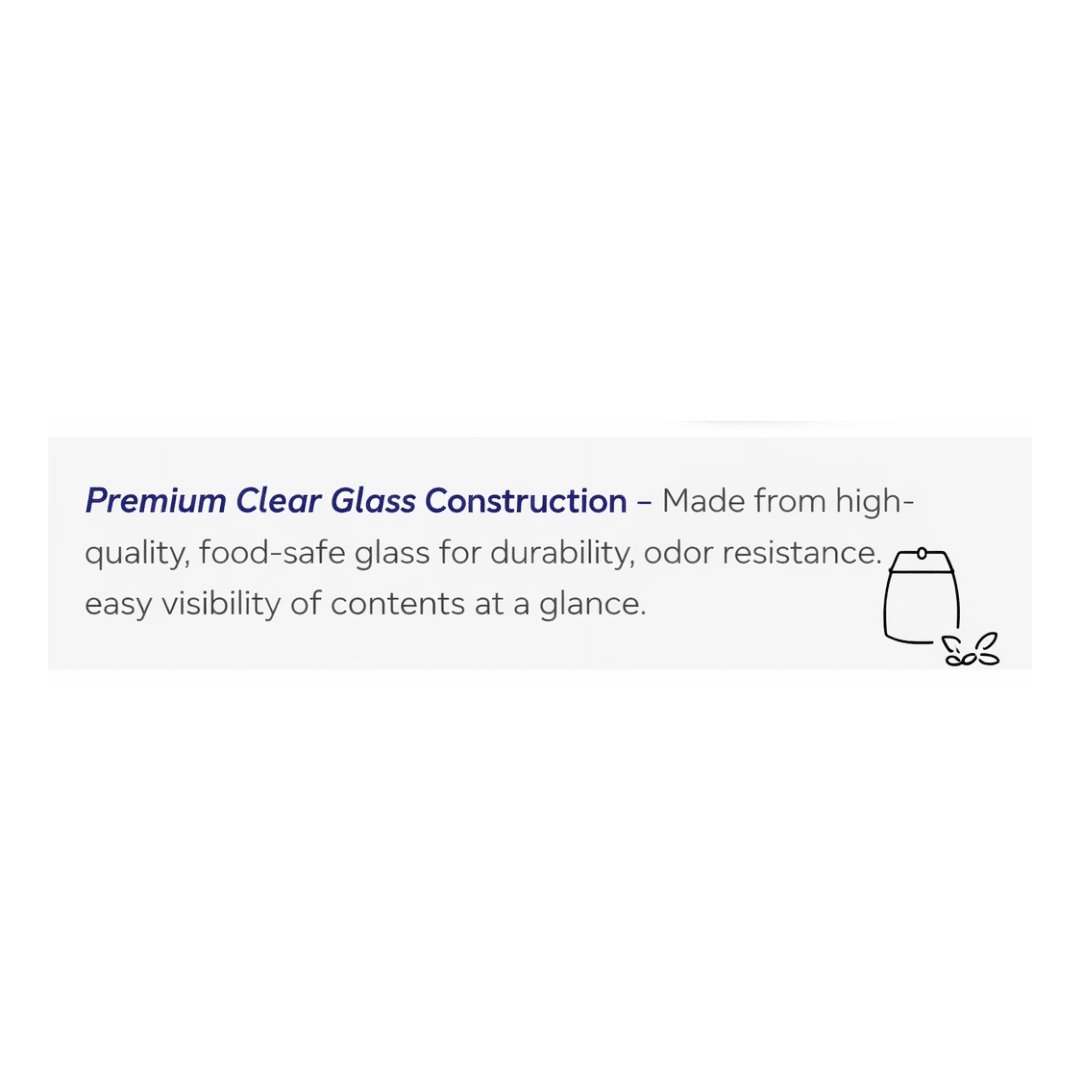 Premium Clear Glass Construction – Made from high-quality, food-safe glass for durability, odor resistance, and easy visibility of contents at a glance.