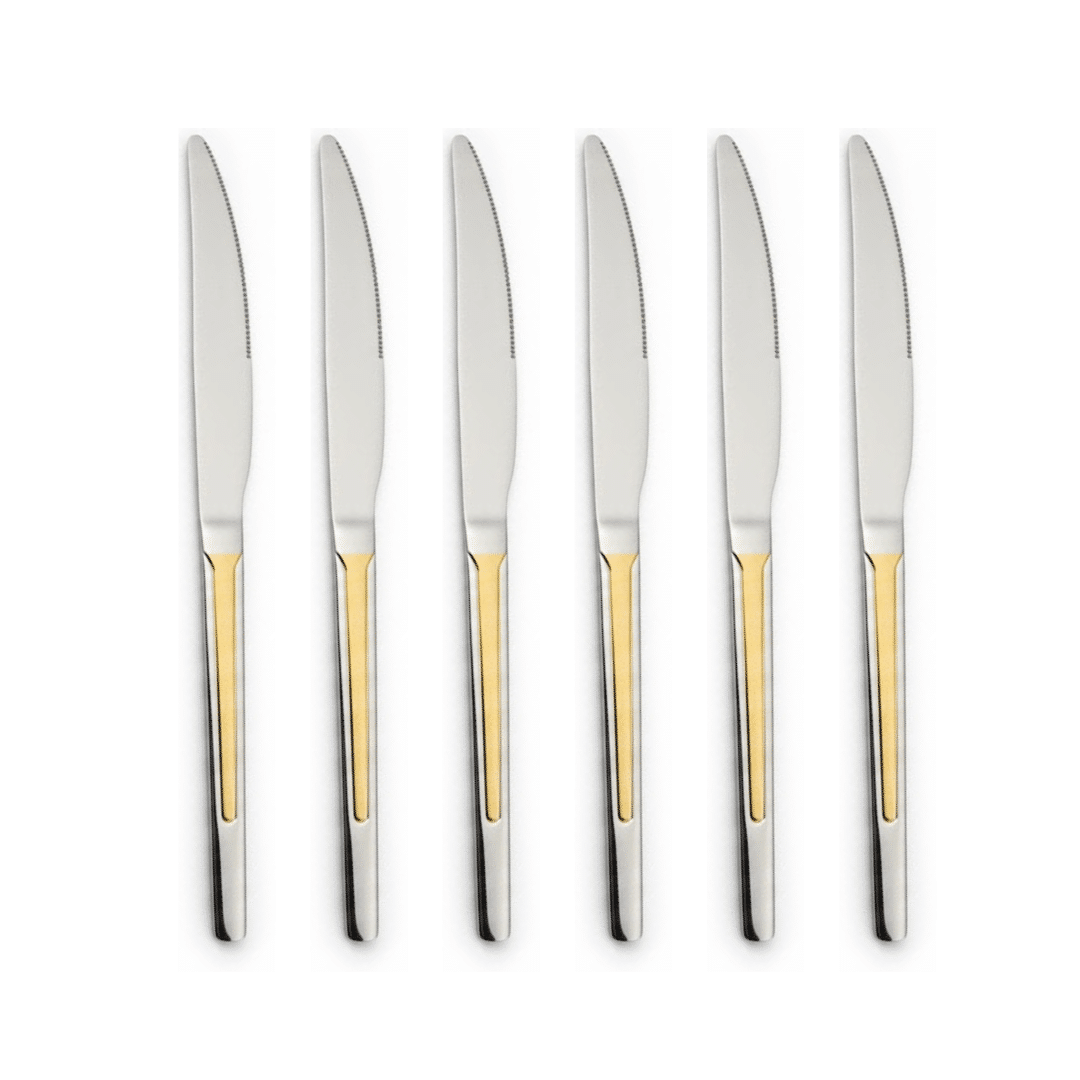 Elegant Two-Tone Finish: Stylish silver knives with a sleek gold accent, adding luxury and sophistication to your dining setup.