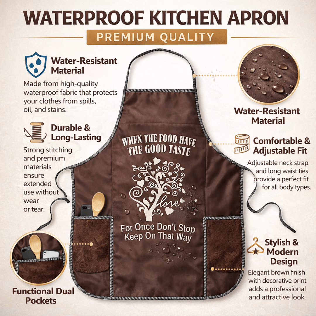 Stay clean and stylish while cooking with this waterproof kitchen apron. Designed to protect your clothes from spills, oil, and stains, this apron is perfect for everyday kitchen use.